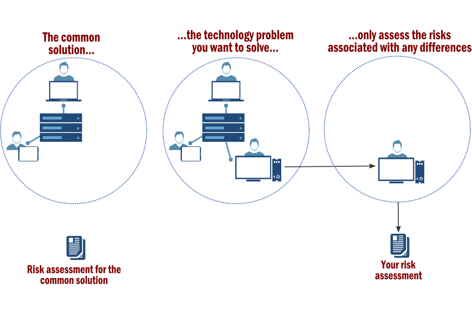 In this approach, the organisation applies the security provided by common security solutions to solve common technology problems. It only carries out tailored risk assessments (or specifies additional security controls) for those business objectives that are not entirely covered by the common solution.