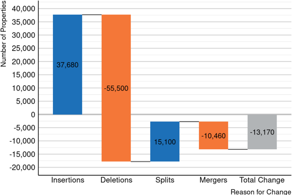 Figure 1: Changes to stock of property counts by the reason for the change in England and Wales.