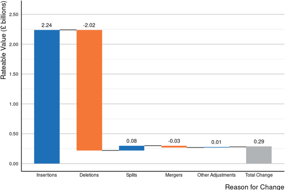 Figure 2: Changes to rateable value by the reason for the change in England and Wales.