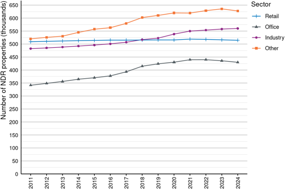 Figure 7: Number of rateable properties by sector in England and Wales