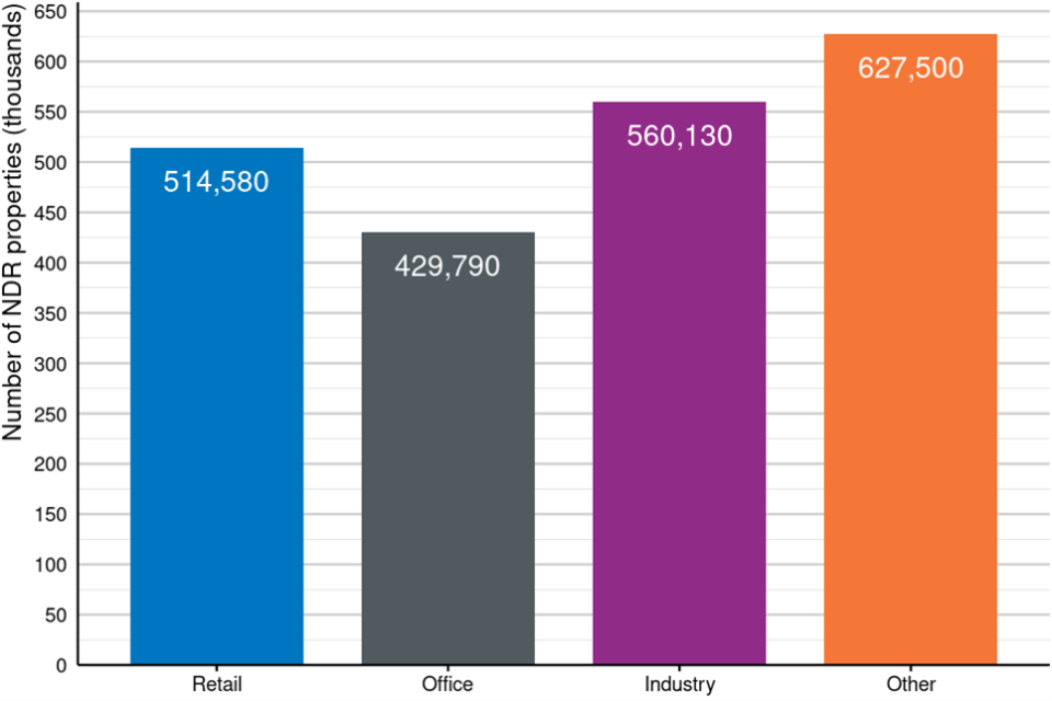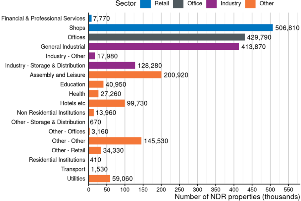 - the number of properties in the Retail sector has increased by 1%, from 509,080 to 514,580