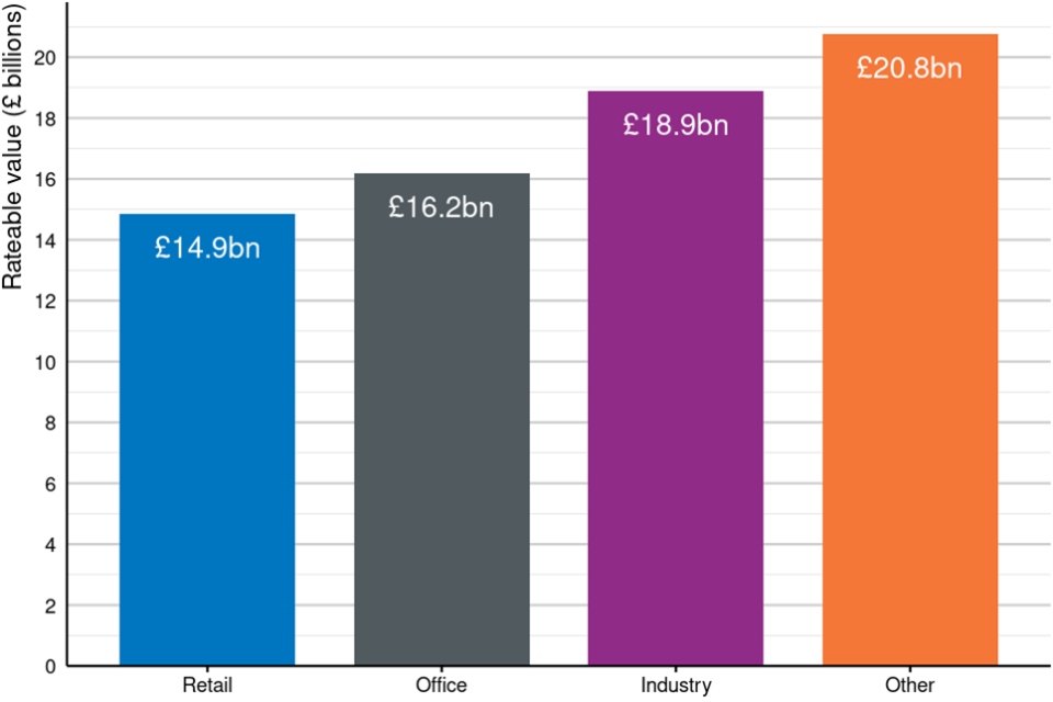 - the total RV for the Retail sector has reduced by less than 1% from £14.9 billion to £14.8 billion