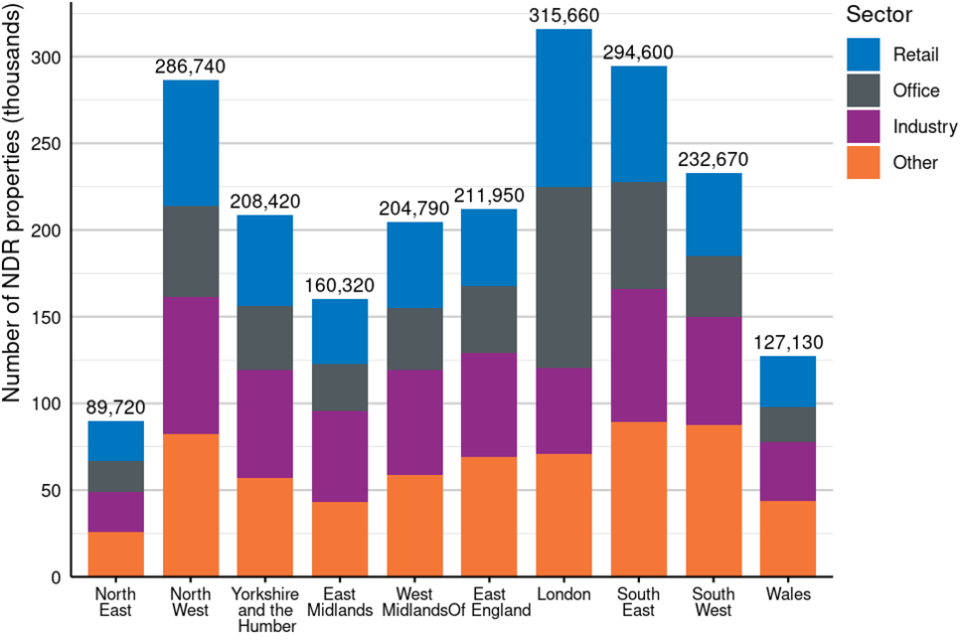 Figure 9: Number of rateable properties by region and sector