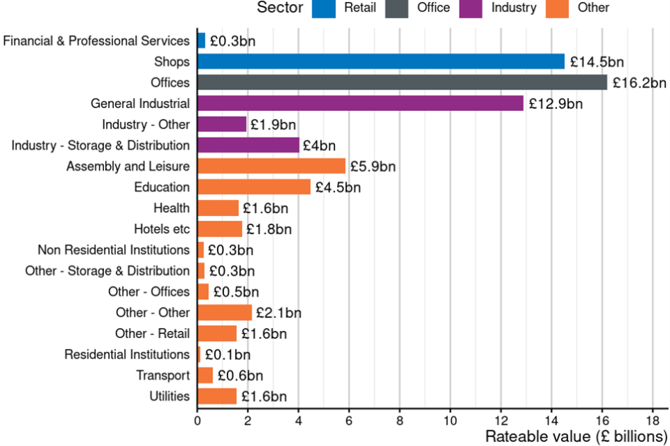 Figure 6: Total rateable value by sector in England and Wales