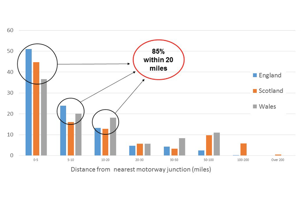 85% of the population of Great Britain is within 20 miles of a motorway junction