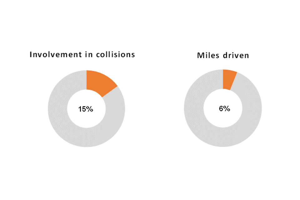 Figure 1: young driver involvement in collisions compared with miles driven, 2015