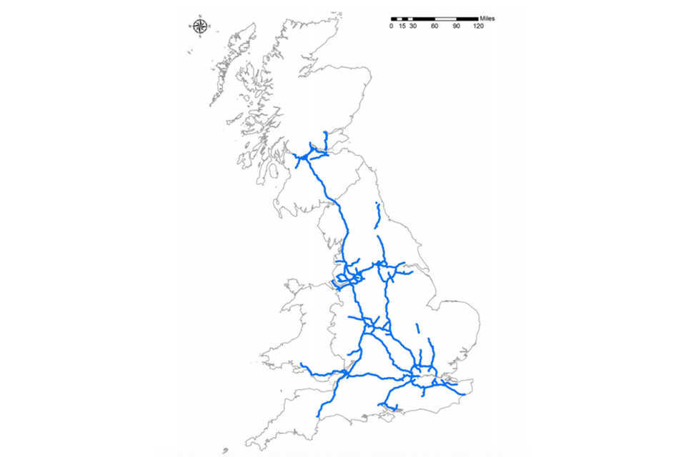 Figure 6: the motorway network in Great Britain (Crown copyright and database rights 2016, Ordnance Survey Licence Number 100039241)