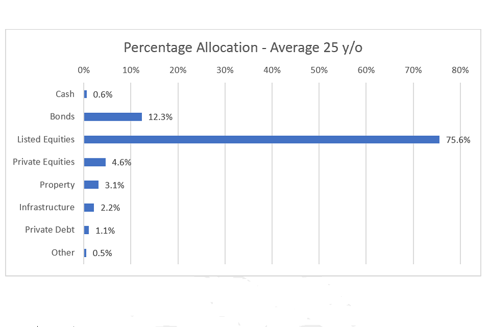 Private equity: Unlisted equities which are not publicly traded on a stock exchange. Private equity funds can encompass a broad range of investment styles. Schemes should provide a sub-asset allocation to show members the nature of their exposure. This may include: