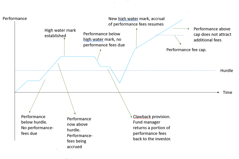 - High water mark - a protection mechanism for investors to ensure that the fund manager only receives performance-based fees for generating additional levels of performance. This avoids an investor paying performance-based fees repeatedly on the same level of performance during periods of volatility.