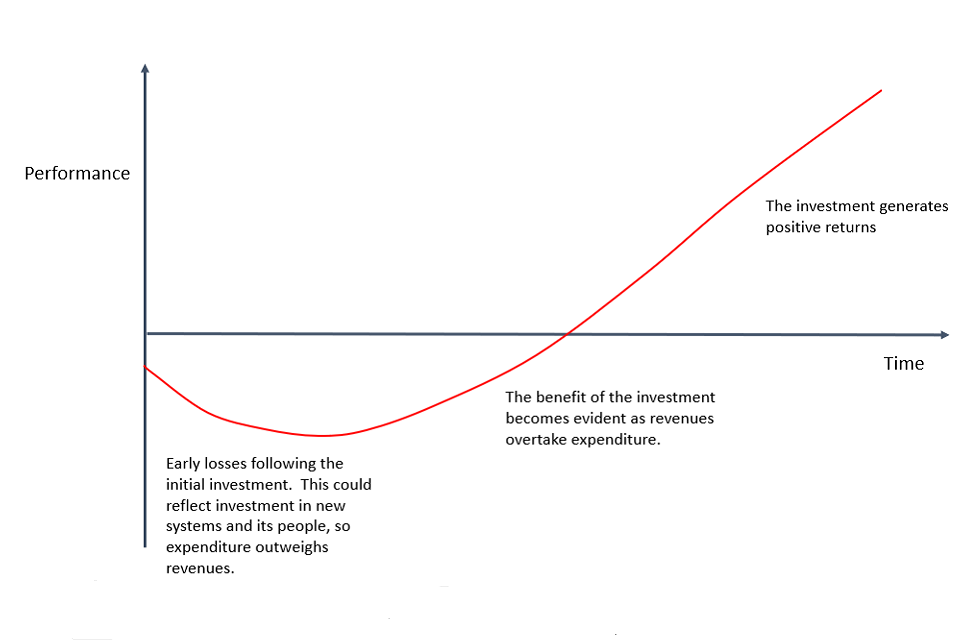 Consider an example of a private equity investment where the returns can be characterized by their profile which is often called the “J-curve” effect. This J curve effect is being used as an example to illustrate member fairness, it is not an endorsement of J curve performance profiles or their use, for example, in DC schemes, the merits of which would have to be considered strategically by trustees and their advisers.