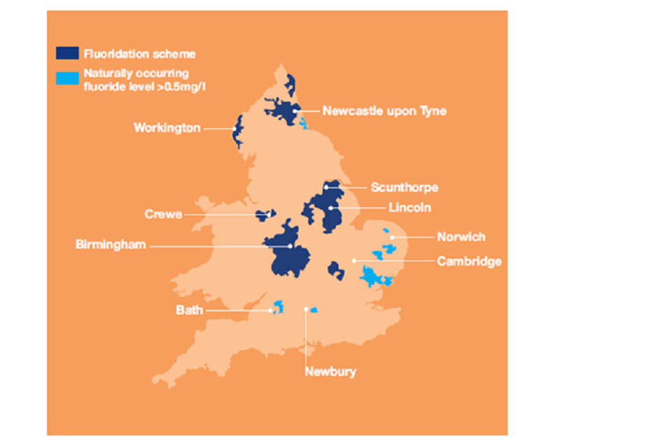 Some 6 million people already live in areas with water fluoridation schemes, including many in parts of the North East, as well as the West and East Midlands. There are also water supplies in England, serving around a quarter of a million people, where fluoride is naturally at similar levels to those seen in water fluoridation schemes.