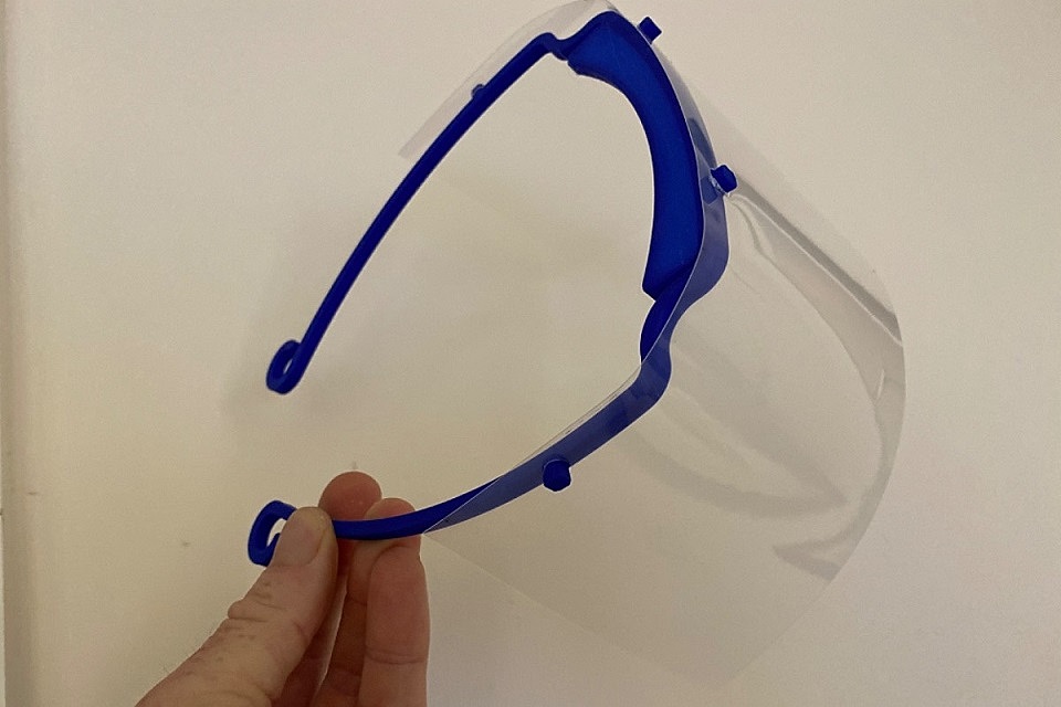 A close up image of one of the visors made using the 3D printer