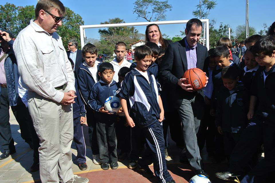HM Ambassador Dr. Jeremy Hobbs was invited to inaugurate a multi-use sports centre in the School Kuarahy Rese in San Estanislao and a water sanitation and distribution system of drinking water in the city of San Pedro, Department of San Pedro. Both works were financed by the British oil firm Amerisur Reousrces PLC, as part of their social corporate responsibility.