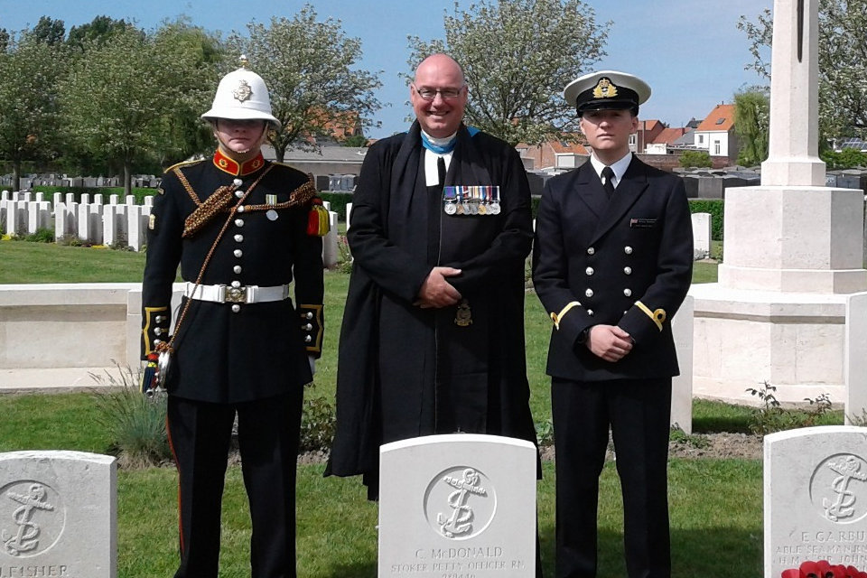 PO Charles McDonald was clearly a sailor’s sailor having joined the Royal Navy in 1898 at the tender age of 18 years. He came from Leith, the port of Edinburgh and although we know little about him it is likely that the sea would in some way have been in his blood. The raid on Oostende on 9 and 10 May 1918 was a bold and brave assault which would have inevitably been costly in terms of lives. It is a privilege to lead a service today to commemorate PO McDonald as a fellow matelot and Scot. May his soul rest in peace and rise in glory and may we never forget the sacrifice of the few for the many.