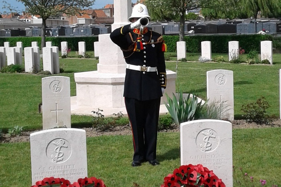 A dignified service of rededication was held for Petty Officer (PO) Charles McDonald yesterday, Thursday 10 May 2018, at the Commonwealth War Graves Commission (CWGC) Oostende New British Cemetery in Belgium, exactly 100 years after his death. PO McDonald, originally from Leith in Edinburgh, was formerly buried as an unknown British sailor.