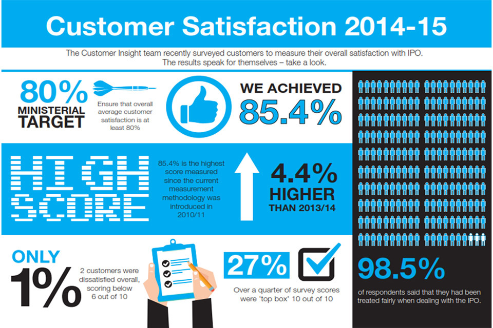 Improving the experience customers have when dealing with the IPO is a key priority. IPO Minister, Baroness Neville-Rolfe, has made it a top level target to “ensure that overall average customer satisfaction is at least 80%”.