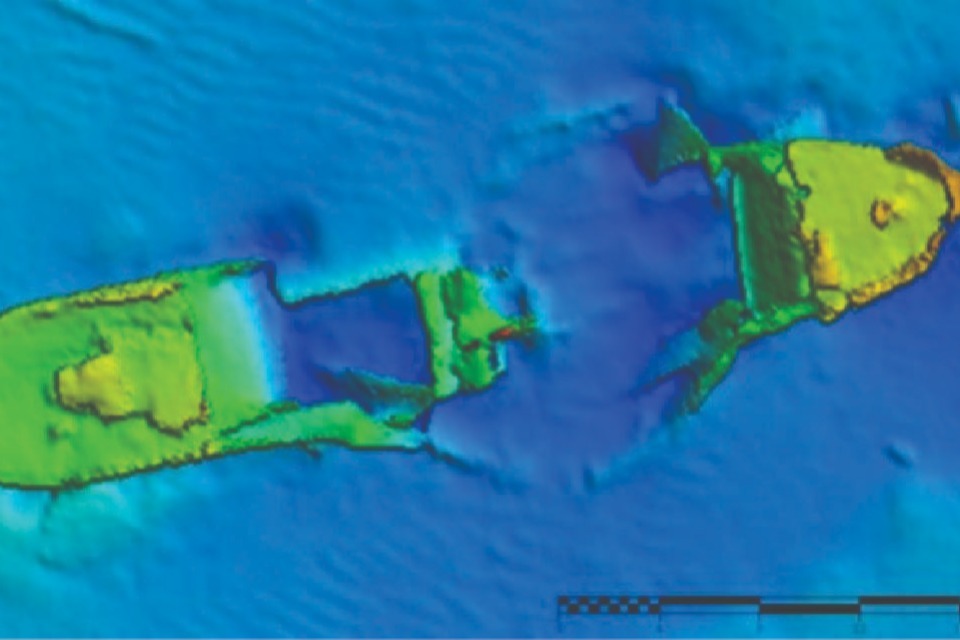 The same wreck as above in side view showing the shallowest point of 6.6m beneath the surface, which is considered a danger to navigation.