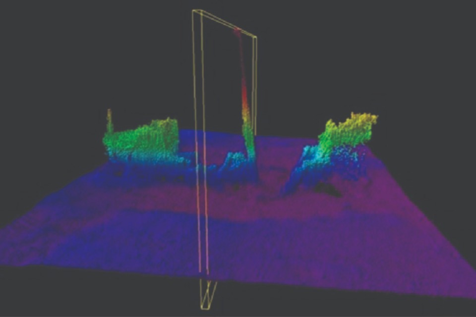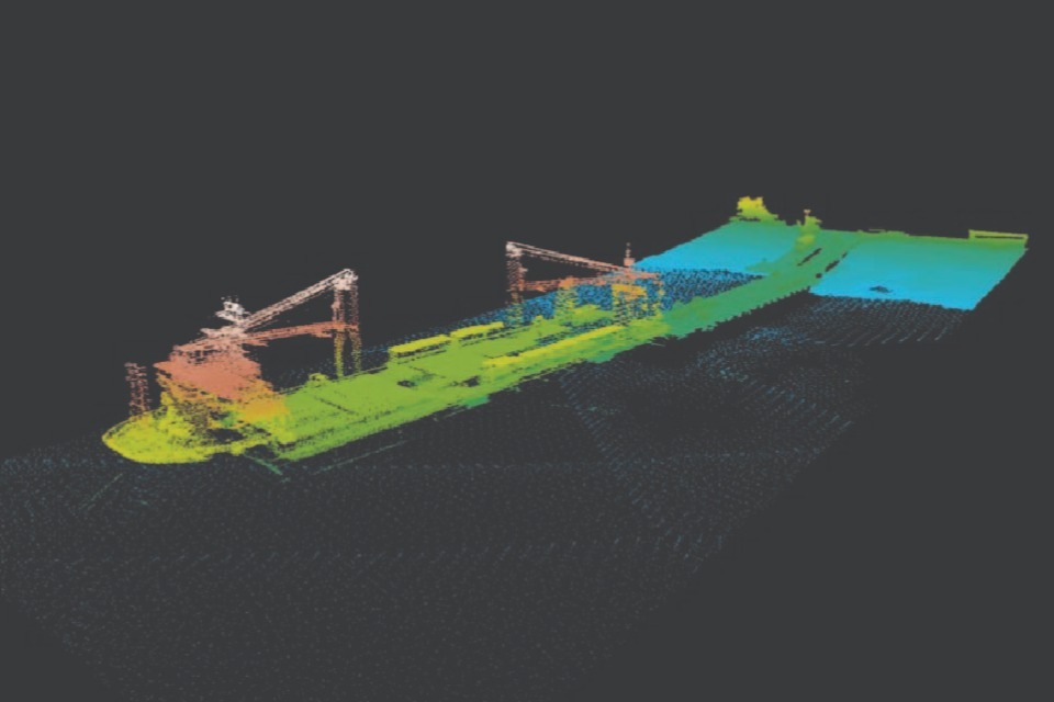 Data from the aerial (Lidar) survey showing a vessel docked at the Road Bay jetty for cargo unloading.