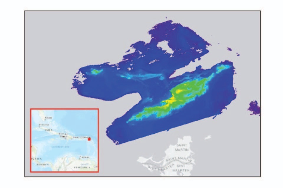 Figure 1: Location map of Anguilla and coverage of the airborne seabed mapping survey
