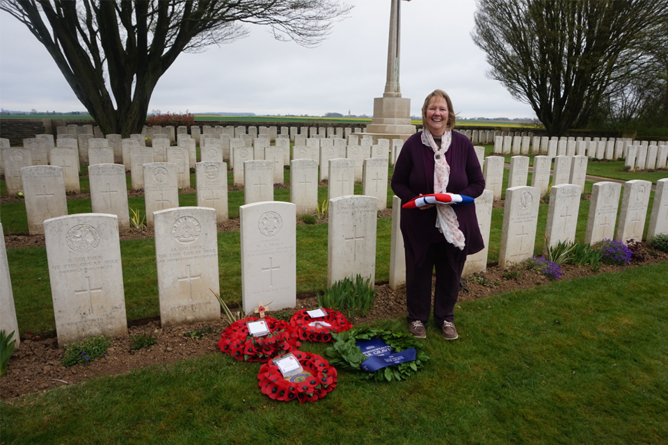 Angela Ridge, the great great niece of Lt Piercy, stands at his graveside.
