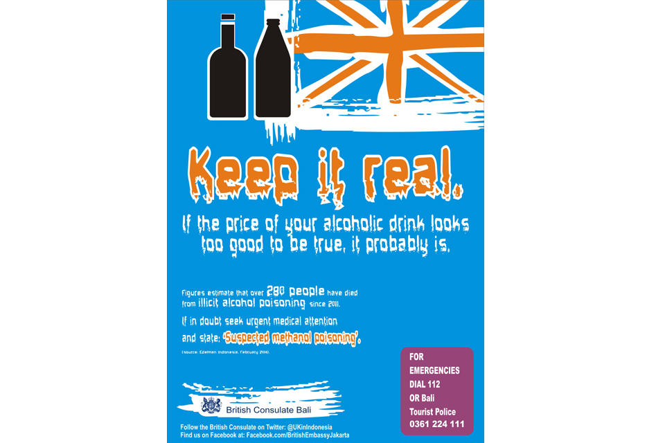 Methanol Poisoning Awareness Campaign: British Consulate Bali.
