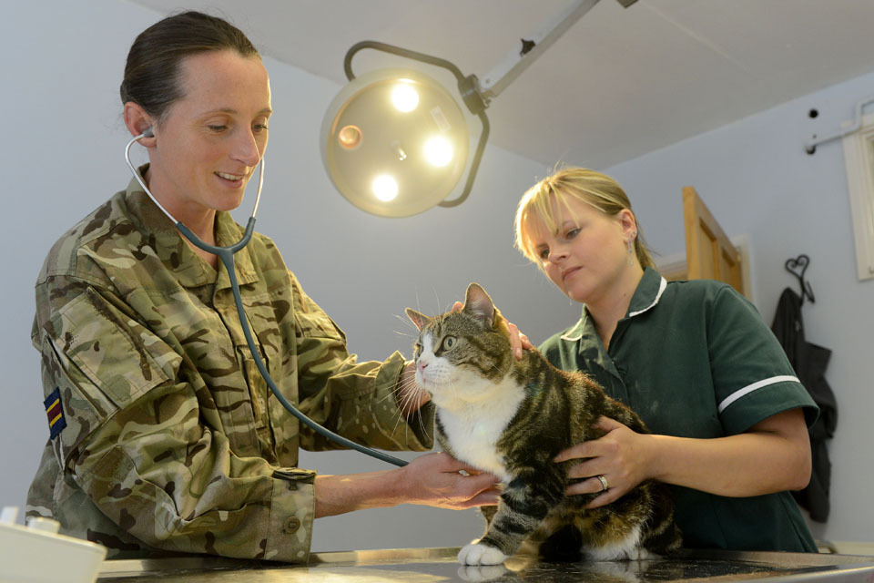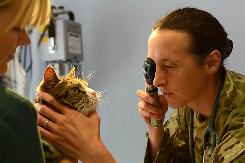 Army reservist and PDSA vet Angela Heeley checks over one of her feline patients [Picture: Corporal Barry Lloyd, Crown copyright]