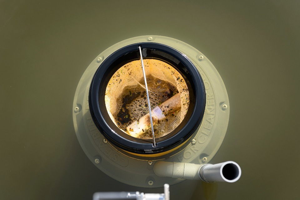 The Seabin is a large bucket shaped device containing a mesh net and oil filters which attaches to a pontoon in a marina and gently draws water through an opening in the top and out of the bottom in a way which poses no threat to marine life.