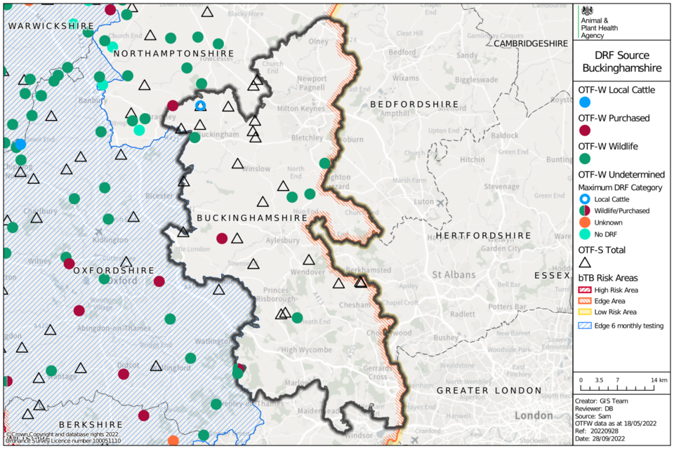 This report describes the frequency and geographical distribution of TB in 2021 in cattle herds in Buckinghamshire, which forms part of the Edge Area. It examines what factors are likely to be driving TB in this area, and the risks the disease in this county may pose to neighbouring areas.