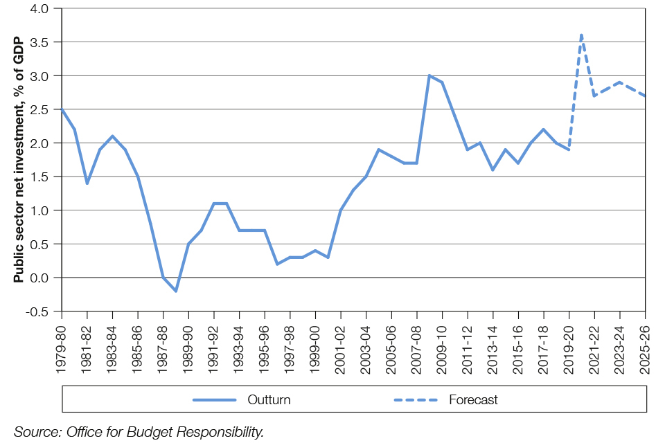 Alongside the Budget, the government’s wider economic plan for significant investment in skills, infrastructure and innovation is set out in ‘Build Back Better: our plan for growth’.[footnote 5] Public investment is a significant part of the government’s economic and fiscal strategy and will contribute to productivity growth. At SR20 the government announced £100 billion of capital investment in 2021-22, a £30 billion cash increase compared to 2019-20.[footnote 6] This is the next stage in plans to spend over £600 billion in gross public investment over the next five years. The Budget also sets out more detail on the new UK Infrastructure Bank. The Bank will partner with the private sector and local government to increase infrastructure investment to help tackle climate change and promote economic growth across the country.