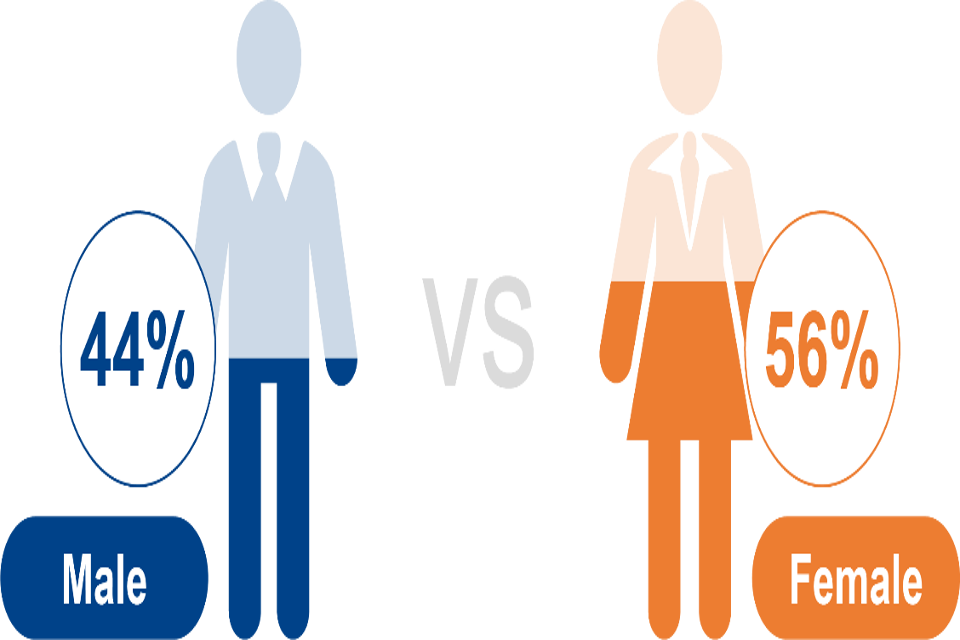 In 2018/19 women made up 56% of DFID’s workforce. Women make up 54% of the wider Civil Service so DFID is broadly similar[footnote 1]. There has been very little movement in the gender composition in the last year. There continues to be an almost equal split of men and women in DFID’s Senior Civil Servants, with 51 and 48 respectively.
