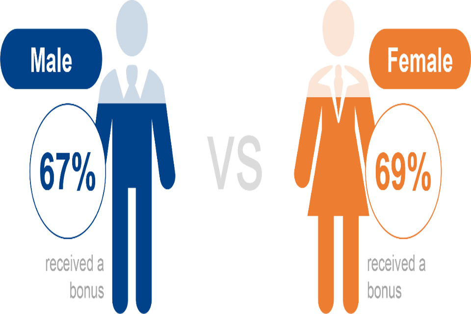 Over the 12 month period, 69.4% of women received a bonus, while 67.4% of men received one. This is an increase of 5.4 percentage points and 8.0 percentage points for women and men respectively, based on the calculations in the table below.