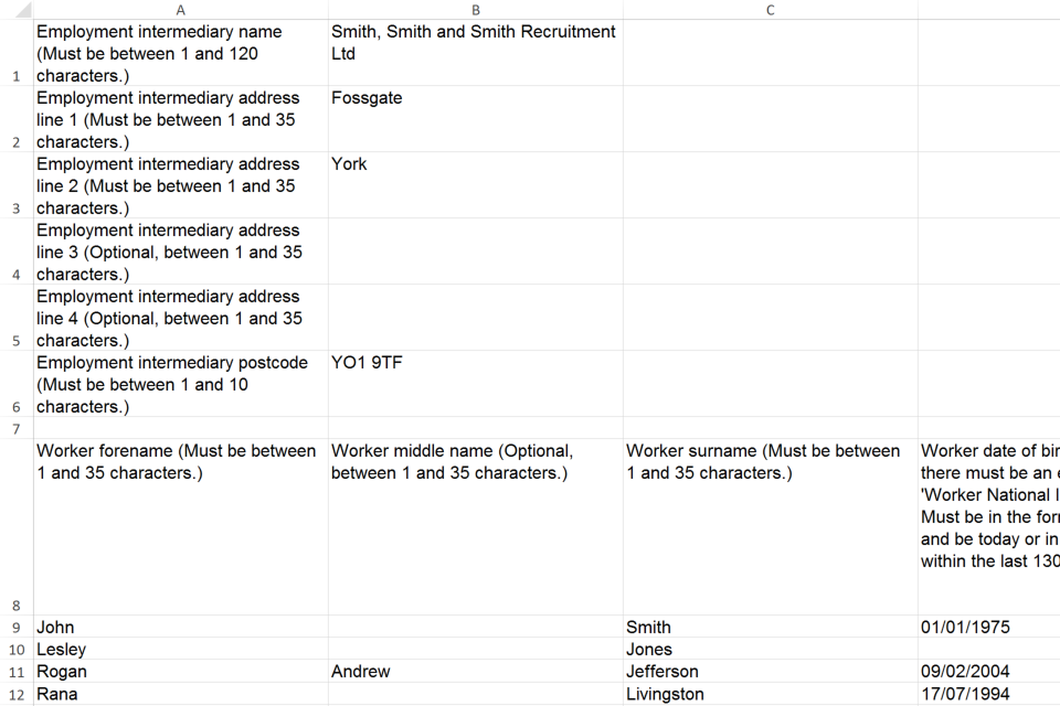 You must use the report template to provide HM Revenue and Customs (HMRC) with workers’ details. You must enter the information in the correct format.