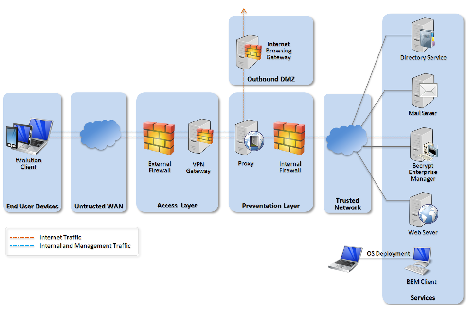 Recommended network architecture for deployments of Becrypt tVolution.
