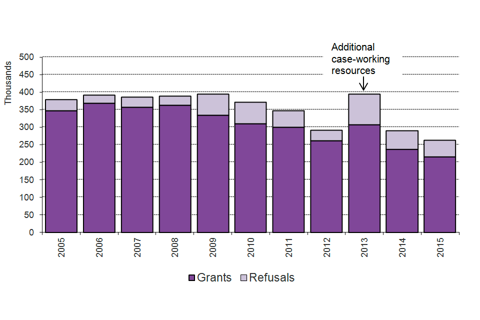 Source: Home Office, Immigration Statistics January to March 2016, Extension table ex 02.