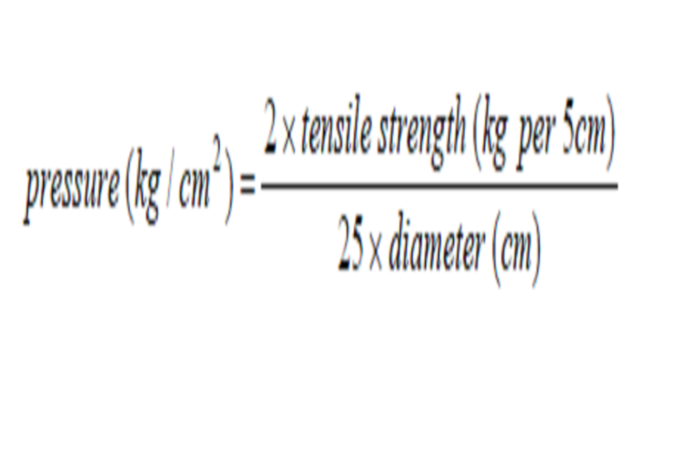 2. Liferaft Manufacturers should include tables in their service manuals of exact NAP test pressures corresponding to their particular tube sizes and fabric tensile strength requirements, calculated according to the equation:
