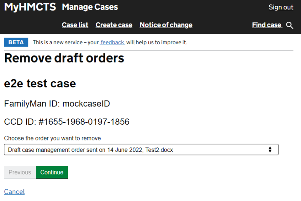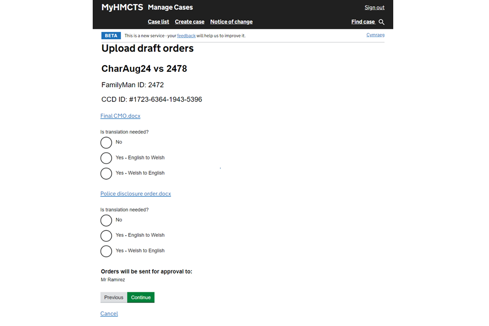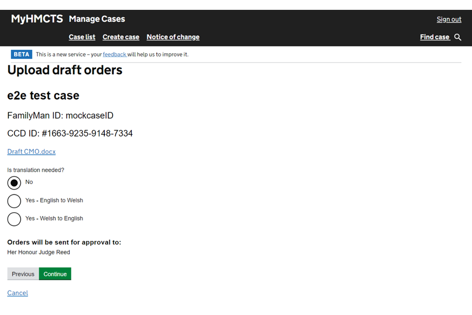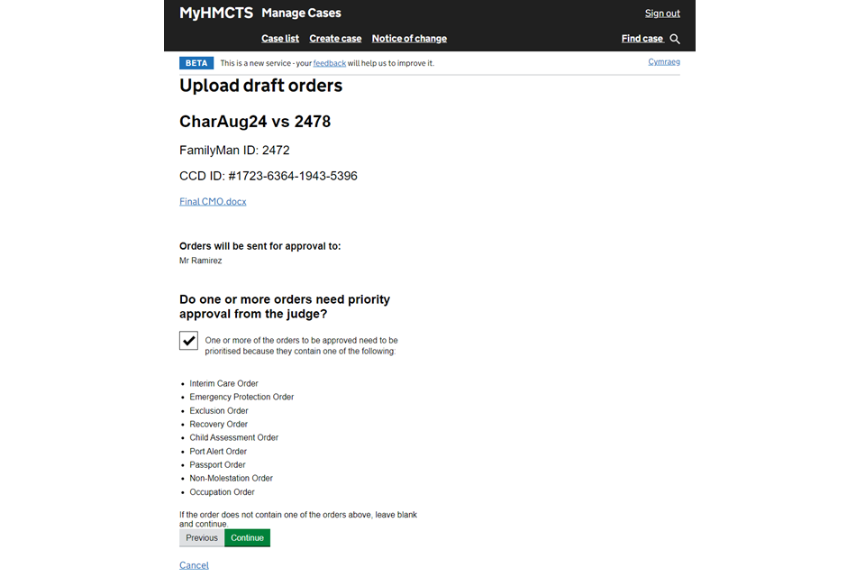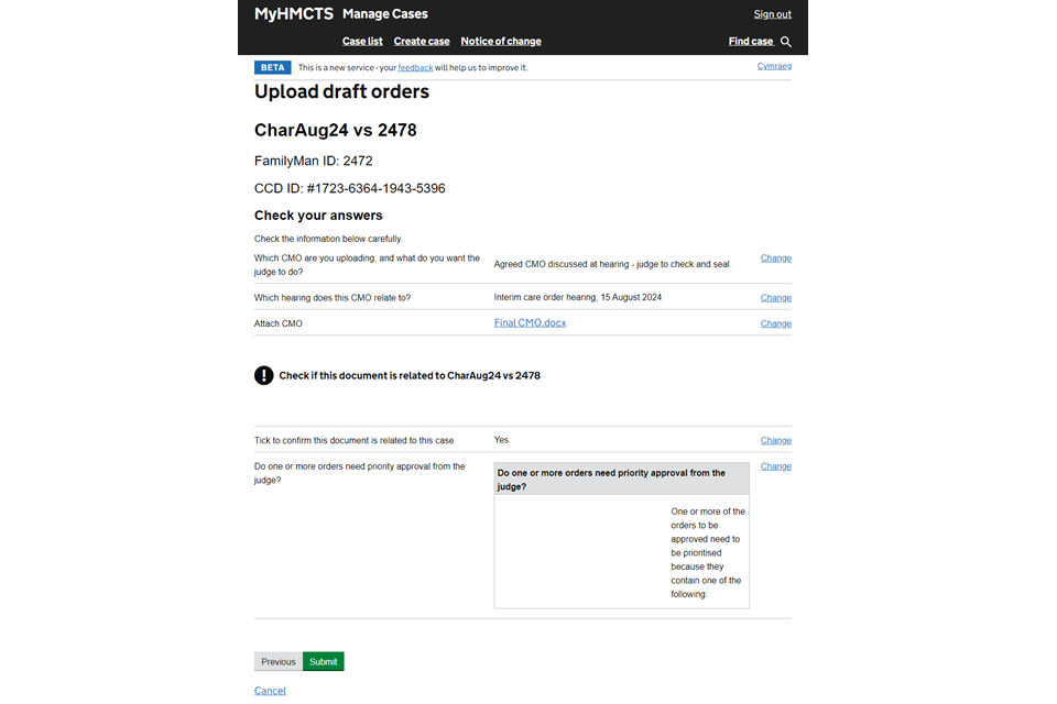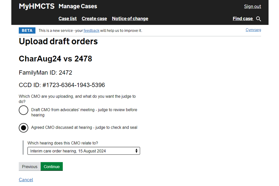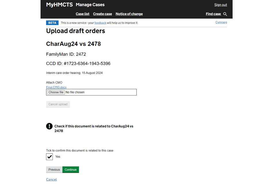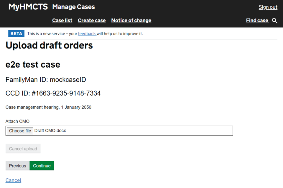 Upload a draft case management order