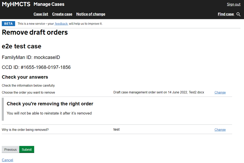 You must email contactfpl@justice.gov.uk if you are removing the draft order because of a data incident. This will need to be reported and checked to make sure it was not accessed.