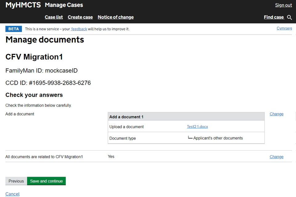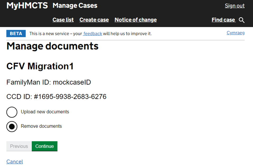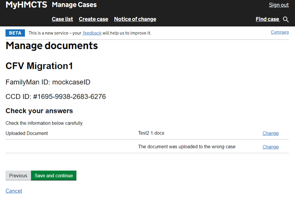 Managing cases and case access in MyHMCTS