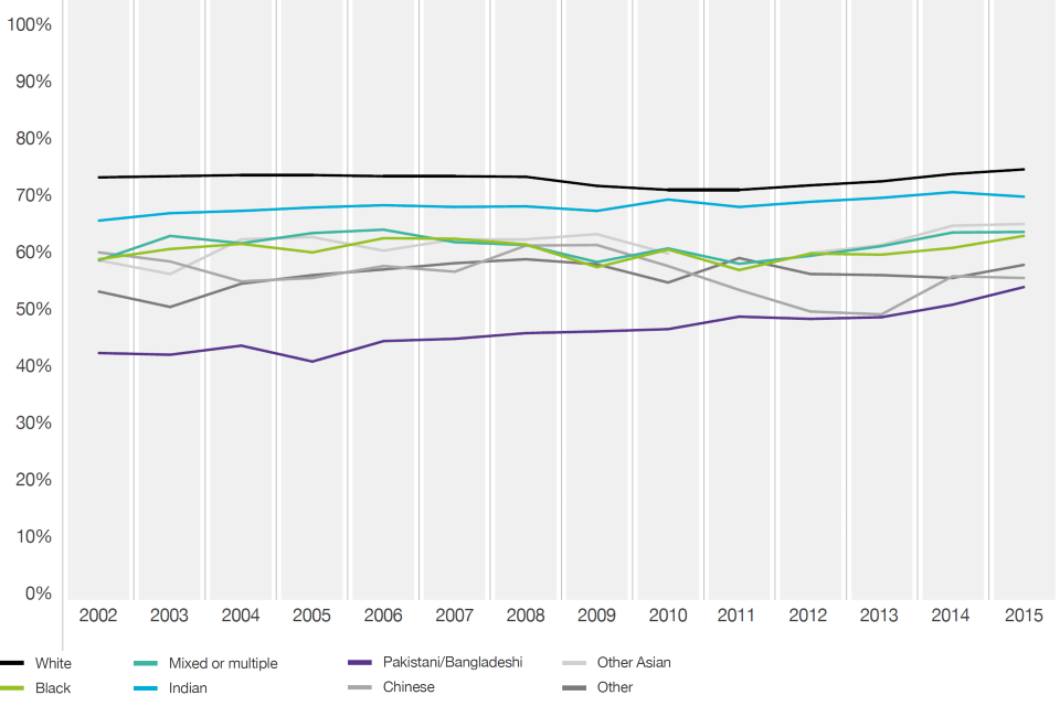 Department for Work and Pensions (2015): ‘Labour Market Status by Ethnic Group’ ↩