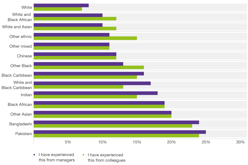 - four-fifths (82%) of respondents across both sectors said they were subjected to cultural insensitivity