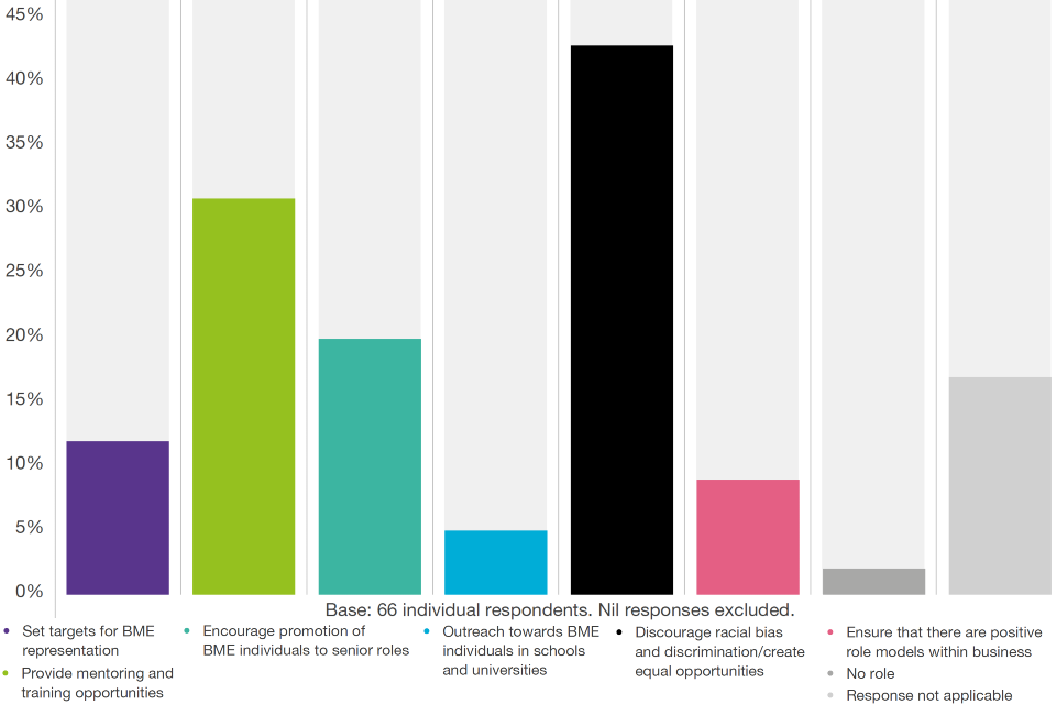 - looking more broadly at who they consider for example, mentoring more diverse groups of people, specifically BAME and female talent