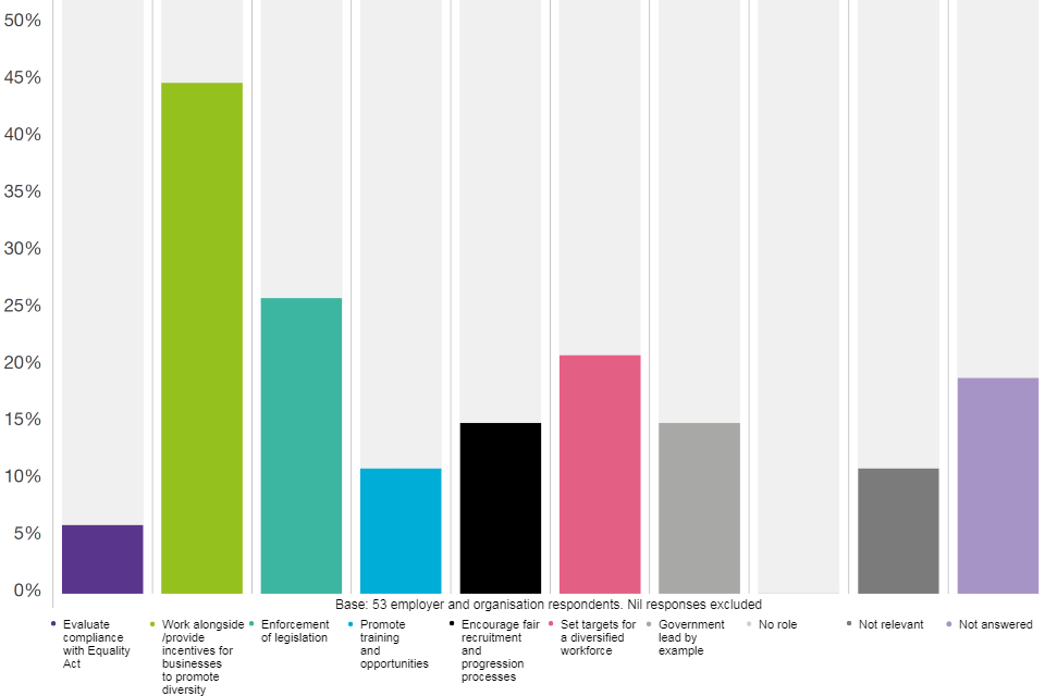 - banning same gender panels, requiring more diversity on all shortlists (for example, at least one woman or BAME candidate), and considering more non-traditional candidates for certain roles (for example, part time, retirees, carers)