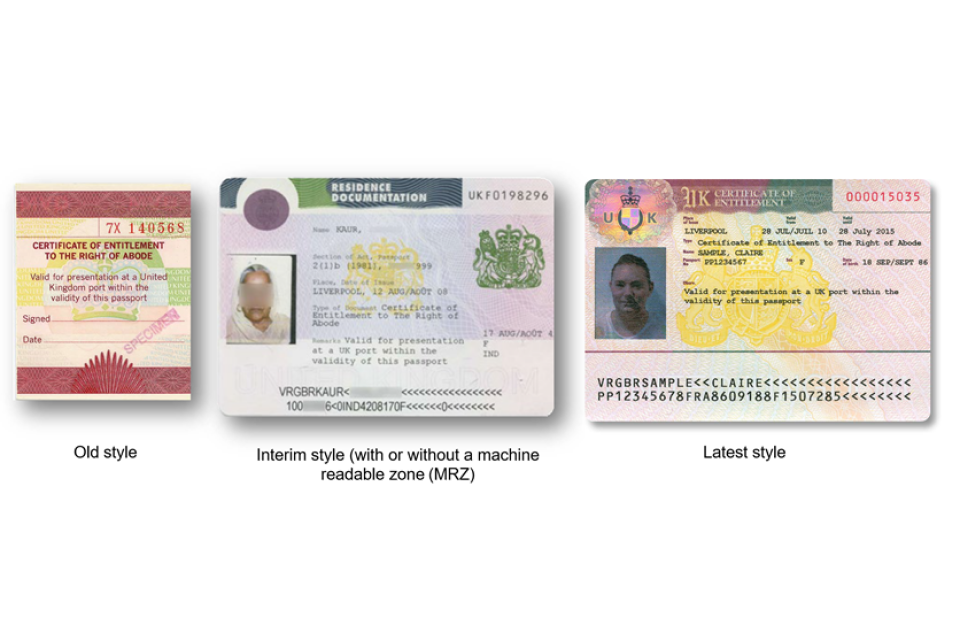 These vignettes (stickers) are evidence of the holder’s right of abode in the UK. They are affixed inside the holder’s foreign passport. They provide evidence that the holder is entitled to travel to, or live, in the UK.