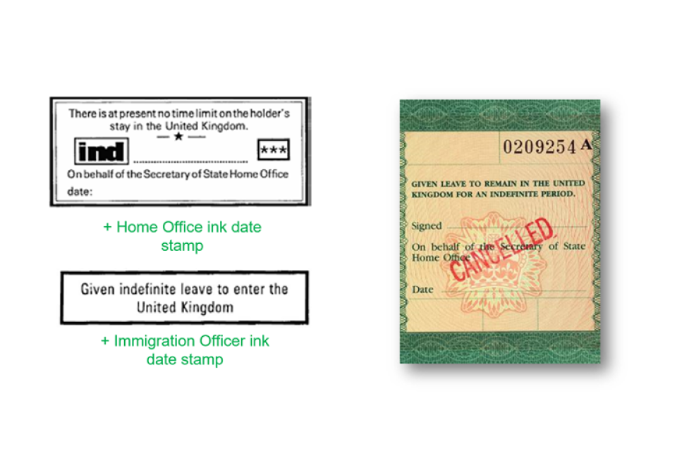 Indefinite leave to remain (ILR) stamps and vignettes