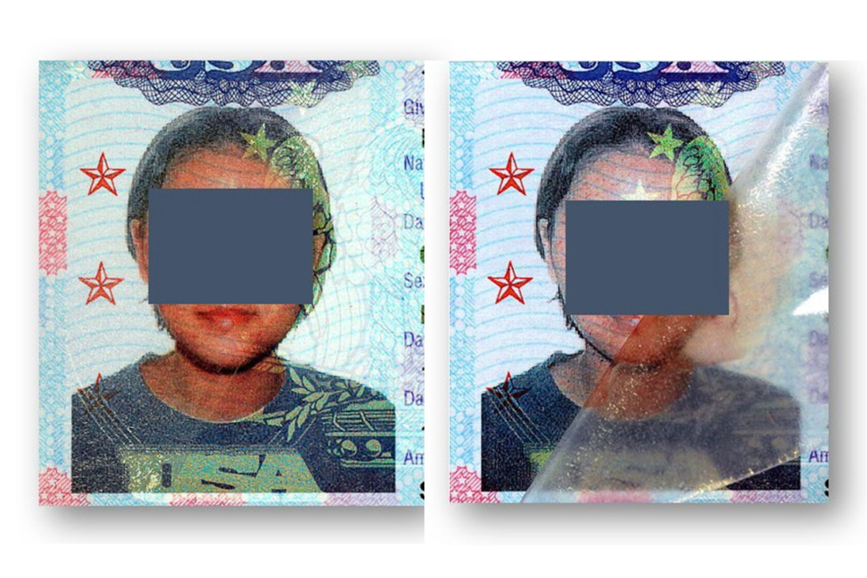 Example of a forged USA passport where a laminate overlay has been used.