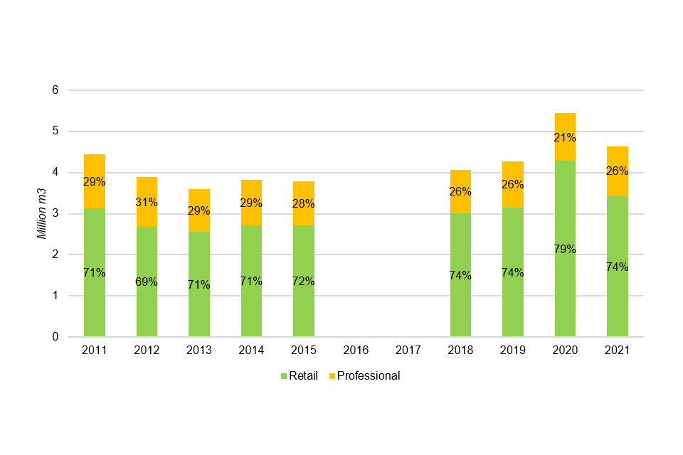 Figure 5: Source of peat volumes sold to the retail sector, 2011 to 2021
