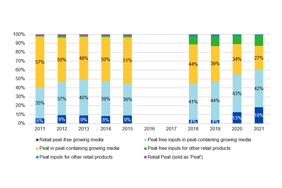 The use of peat in horticulture has fallen over the last decade, driven by greater use of peat-free growing media and reductions in the proportion of peat used in peat-containing growing media. This trend has accelerated in the last 3 years, reflecting changing environmental awareness amongst consumers, retailers’ desire to meet their Environmental, Social and Governance commitments, and manufacturers’ anticipation of government action to ban peat use. Despite these developments, we anticipate that peat would continue to be used in England for the next few years without the proposed ban.