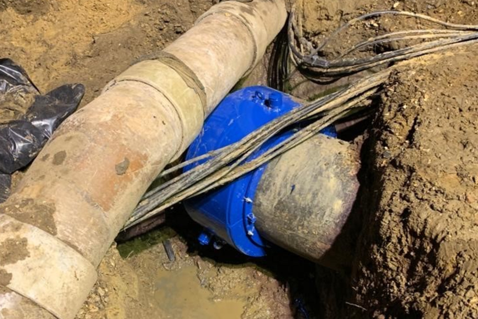 A new upstream pipe section was fitted to the original cast iron pipe with a new flexible coupling. Following testing, some seepage was still evident through the mill wall. Further investigations found that the original cast iron pipe had a fractured section. This was then also repaired.