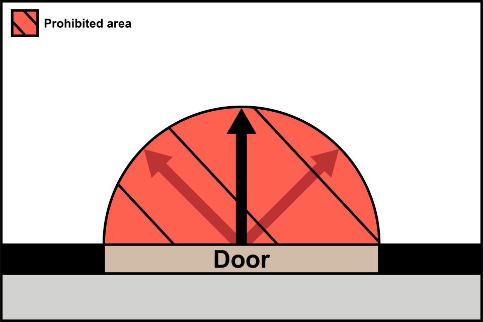 In the image above, there is a single door entrance with the prohibited distance from the midpoint of the entrance within the store.
