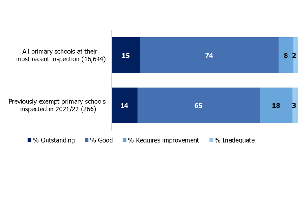 | Previously exempt primary schools inspected in 2021/22 | 266 | 14 | 65 | 18 | 3 |